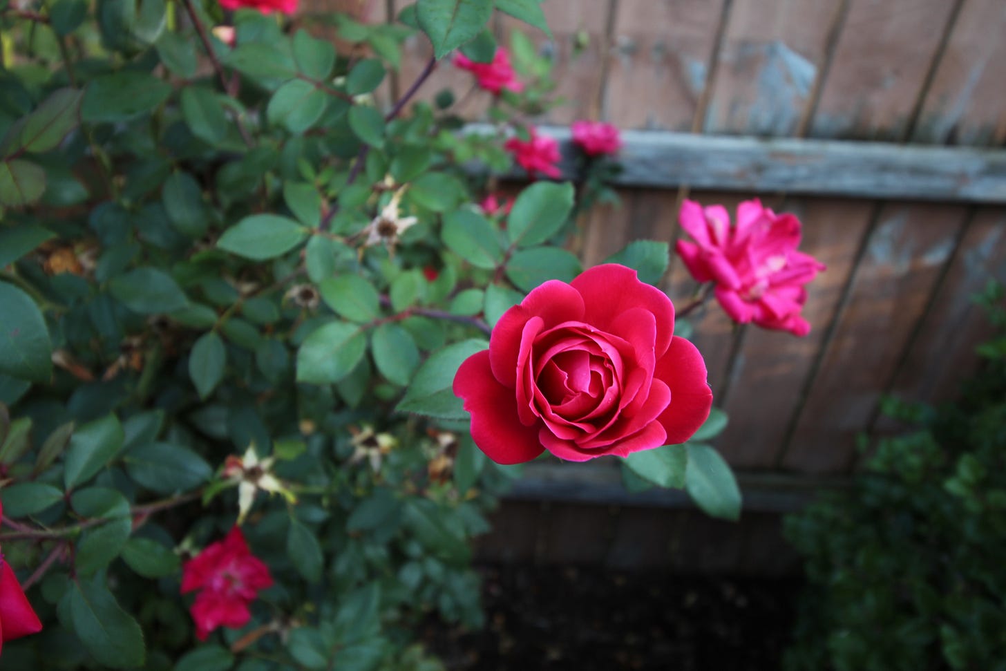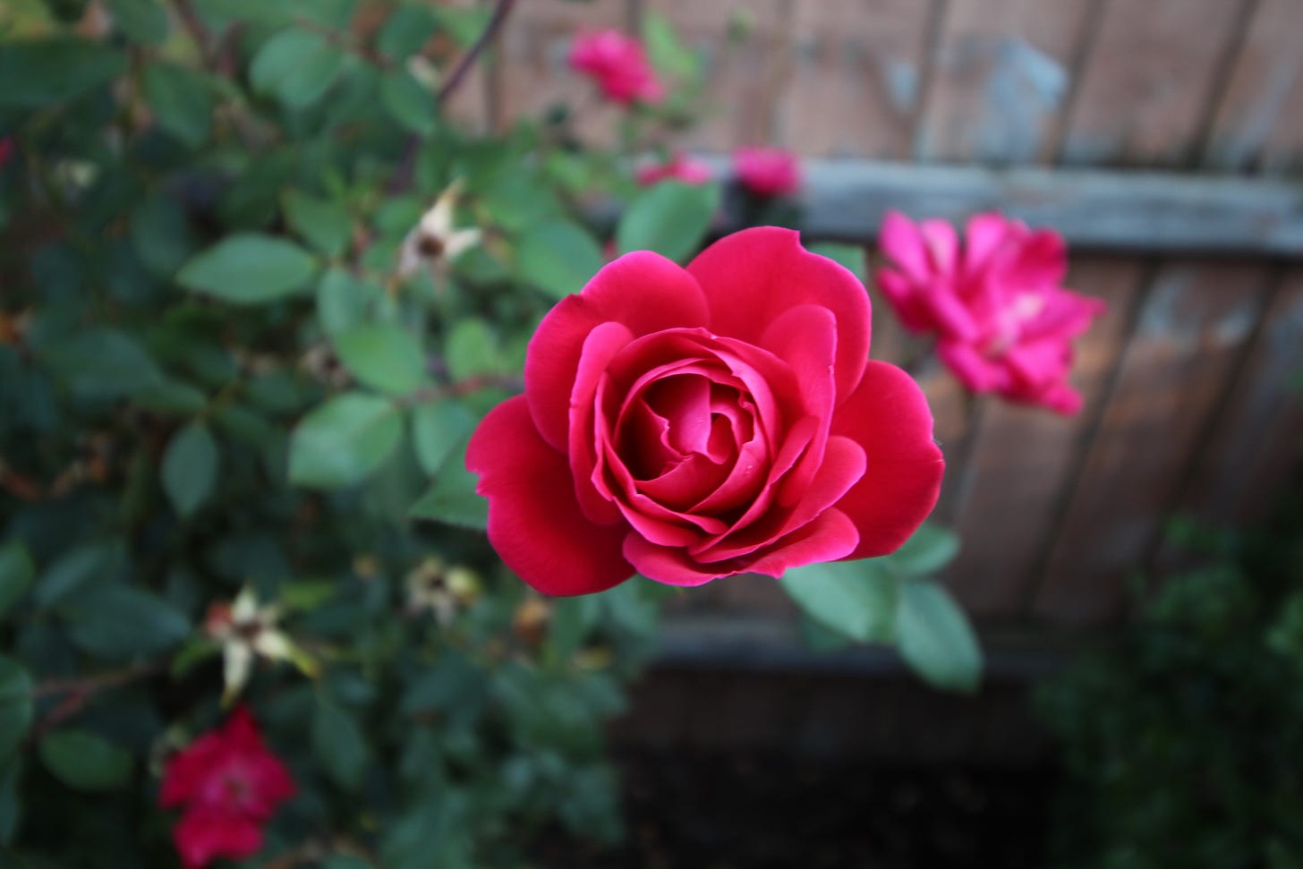 There is no editing on these photos, so you can see how much I was able to fix the exposure in camera. In the initial photo, I think the camera was reading the scene as very dark and then letting in too much light to make up for it. By dropping the exposure compensation down a few stops to -1, it brought out a lot more color and detail in the rose and gave more of a natural vignette effect.